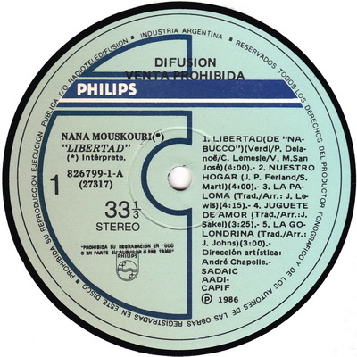Philips 826 799-1 Made in Argentina 1986