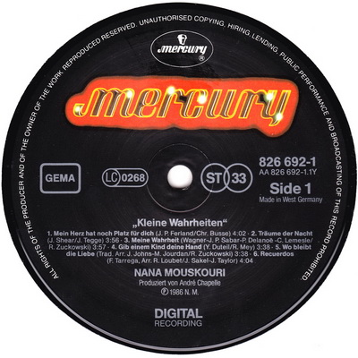 Mercury 826 692-1 Made in Germany 1986