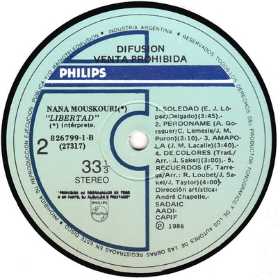 Philips 826 799-1 Made in Argentina 1986