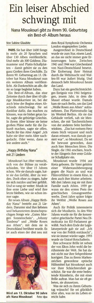 I Kathimerini Sonderbeilage zum 90. Geburtstag 52 Seiten 13.10.2024 |