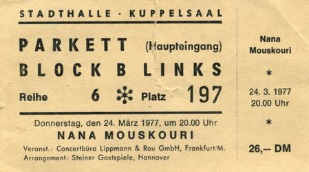 | 26.03.1977 | Berlin | Philharmonie | D | Ticket | O | |||