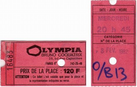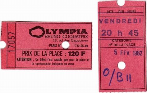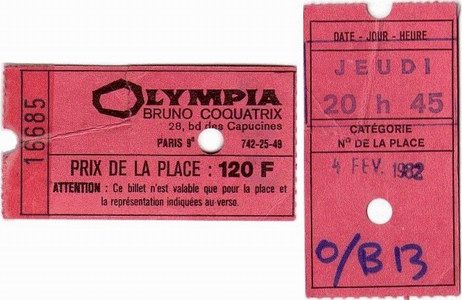 | 29.01.1982 | Paris | Olympia | F | Ticket | C | |||