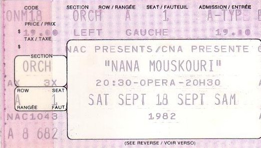 | 19.09.1982 | Ottawa, ON (19:30 Uhr) | National Arts Center | CDN | Ticket | C | |||
