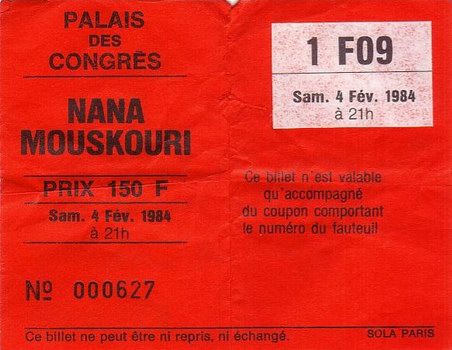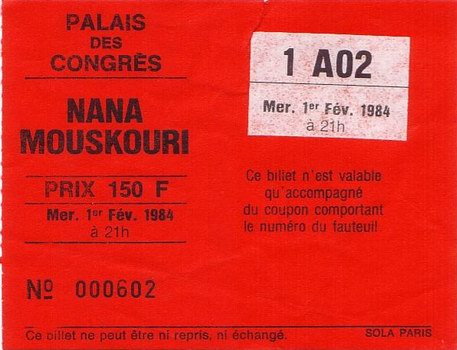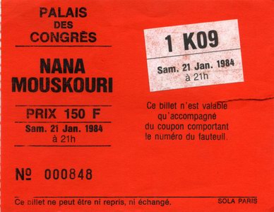 | 31.01.1984 | Paris | Palais des congrès | F | Ticket | C | |||