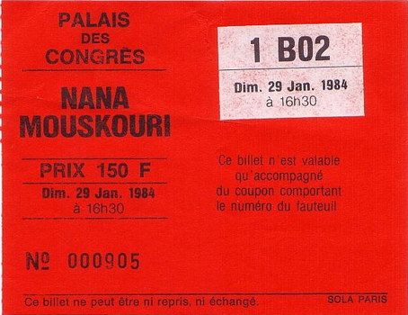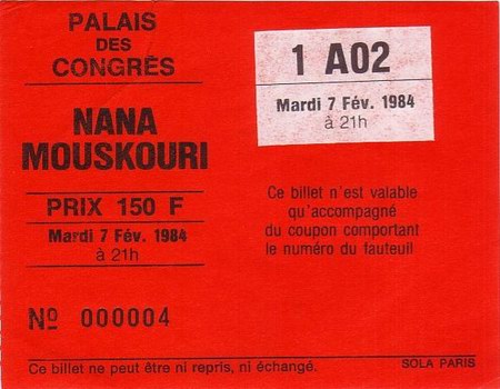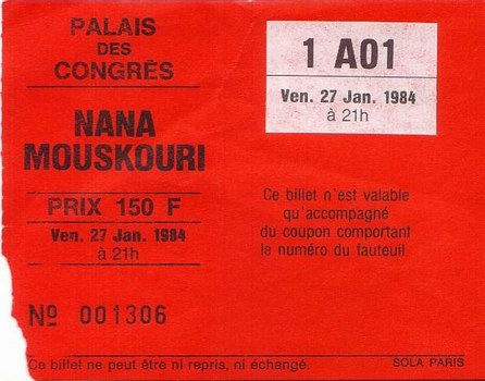 | 12.01.1984 | Paris | Palais des congrès | F | Ticket | O | |||