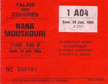 | 28.01.1984 | Paris | Palais des congrès | F | Ticket | C | |||