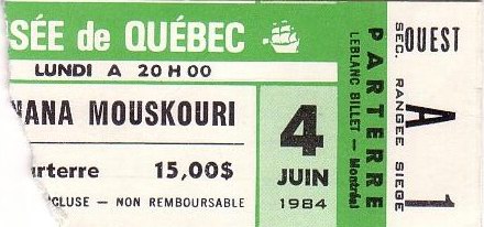 | 11.10.1984 | Montréal, QC | Place des Arts - Salle Wilfrid-Pelletier | CDN | Ticket | C | |||