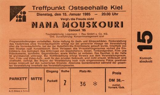 | C5.01.1985 | Kiel | Ostseehalle | D | Ticket | C | |||