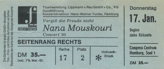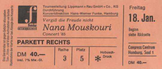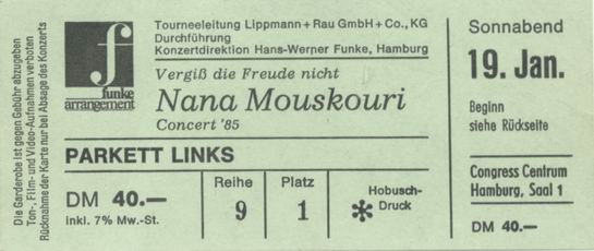 | 18.01.1985 | Hamburg | CCH | D | Ticket | C | |||