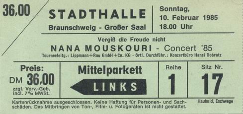 | 10.02.1985 | Braunschweig | Stadthalle | D | Ticket | C | |||