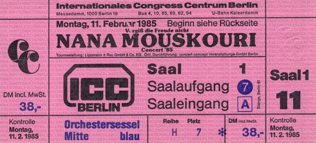 | 11.02.1985 | Berlin | ICC | D | Ticket | C | |||