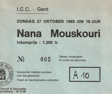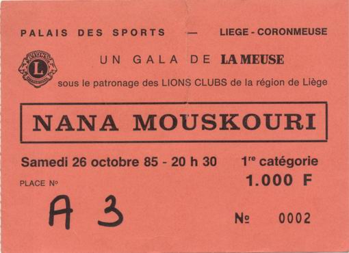 | 25.10.1985 | Mons | Théâtre Royal | B | Ticket | C | |||