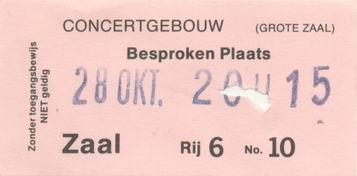 | 28.10.1985 | Amsterdam | Concertgebouw | NL | Ticket | C | |||