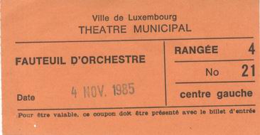 | 04.11.1985 | Luxembourg | Théâtre Municipal | L | Ticket | O | |||