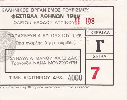 | 04.08.1989 | Athen | Herodes Attikus Theater | GR | Ticket | O | |||