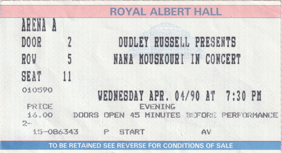 | 04.04.1990 | London | Royal Albert Hall | GB | Ticket | O | |||