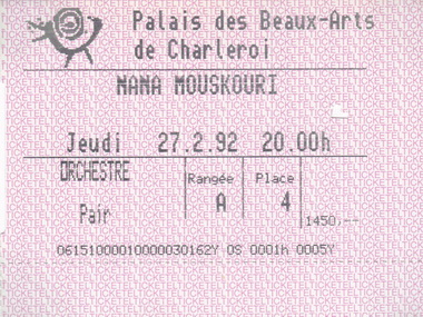 | 13.03.1992 | Mons | Théâtre Royal | B | Ticket | O | |||
