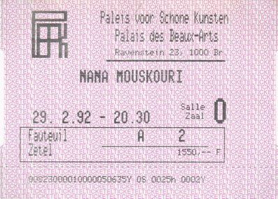 | 01.03.1992 | Brüssel / Bruxelles | Palais des Beaux-Arts | B | Ticket | O | |||