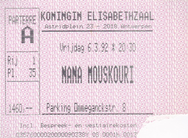 | 06.03.1992 | Antwerpen / Anvers | Koningin Elisabethzaal | B | Ticket | O | |||