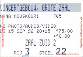 | 15.09.1992 | Amsterdam | Concertgebouw | NL | Ticket | O | |||