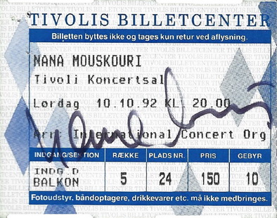 | 10.10.1992 | Kopenhagen | Tivoli | DK | Ticket | C | |||