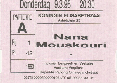 | 08.03.1995 | Anvers / Antwerpen | Koningin Elizabethzaal | B | Ticket | O | |||