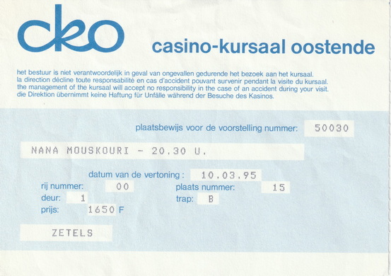 | 10.03.1995 | Oostende | Casino Kursaal | B | Ticket | O | |||