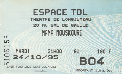 | 24.10.1995 | Longjumeau | Théâtre de Longjumeau | F | Ticket | O | |||