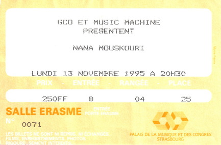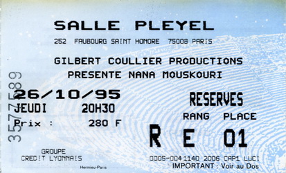 | 26.10.1995 | Paris | Salle Pleyel | F | Ticket | O | |||