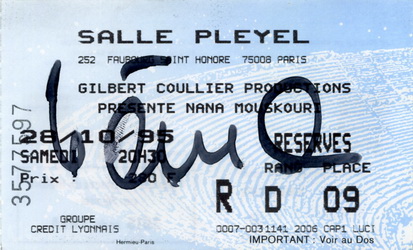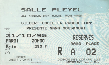 | 28.10.1995 | Paris | Salle Pleyel | F | Ticket | O | |||