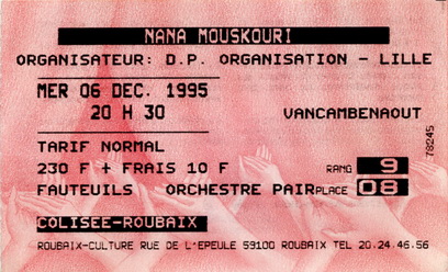| 06.12.1995 | Roubaix | Colisée | F | Ticket | O | |||