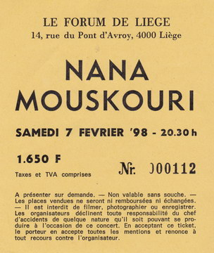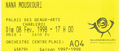 | 08.02.1998 | Charleroi | Palais des Beaux Arts | B | Ticket | O | |||