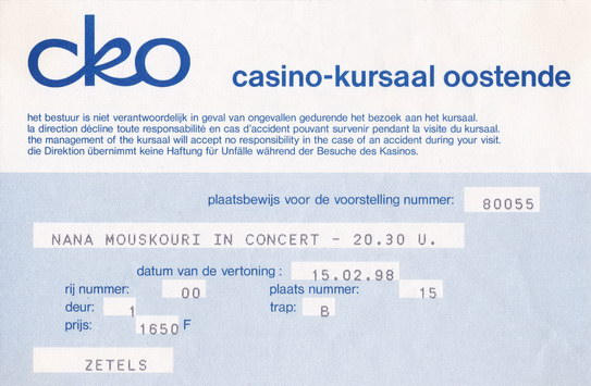 | 15.02.1998 | Oostende / Ostende | Casino Kursaal | B | Ticket | O | |||