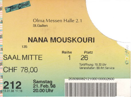 | 21.02.1998 | St. Gallen | Olmahalle | CH | Ticket | O | |||