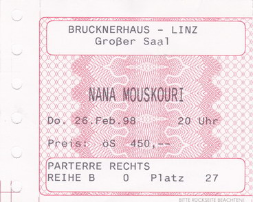 | 26.02.1998 | Linz | Brucknerhaus | A | Ticket | O | |||