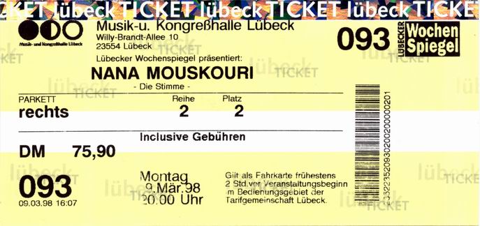 | 09.03.1998 | Lübeck | MuK | D | Ticket | C | |||