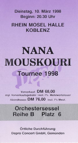 | 10.03.1998 | Koblenz | Rhein-Mosel-Halle | D | Ticket | O | |||