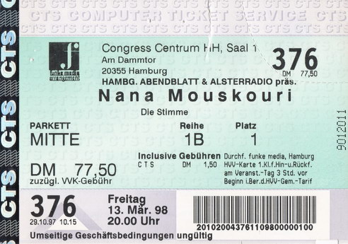 | 13.03.1998 | Hamburg | CCH | D | Ticket | O | |||