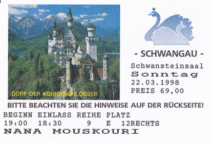 | 22.03.1998 | Schwangau | Kurhaus | D | Ticket | O | |||