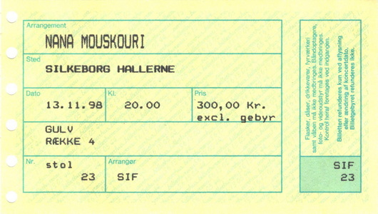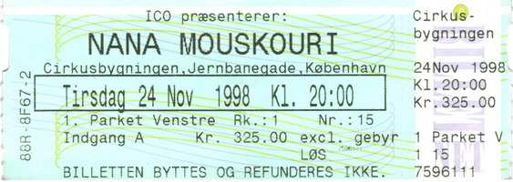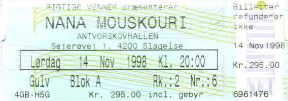 | 21.11.1998 | Vejle | Musikteatret | DK | Ticket | O | |||