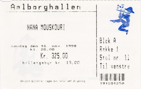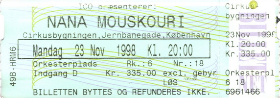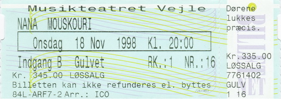 | 18.11.1998 | Vejle | Musikteatret | DK | Ticket | O | |||