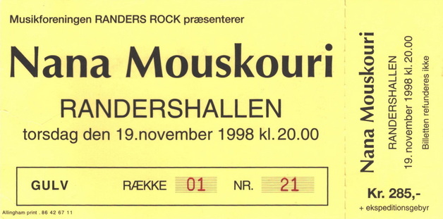 | 19.11.1998 | Randers | Randershallen | DK | Ticket | O | |||