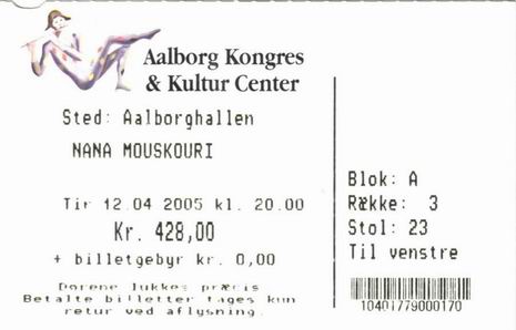 | 12.04.2005 | Aalborg | Kongres & Kulturcenter | DK | Ticket | O | |||