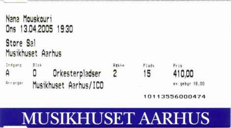 | 13.04.2005 | Aarhus | Musikhuset | DK | Ticket | O | |||