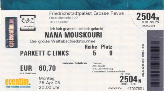 | 25.04.2005 | Berlin | Friedrichstadtpalast | D | O | ||||