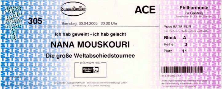 | 29.11.2005 | München | Philharmonie im Gasteig | D | Ticket | O | |||