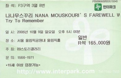 | 09.10.2005 | Seoul | Olympic Hall | ROK | Ticket | C | |||