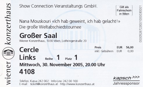 | 30.11.2005 | Wien | Konzerthaus | A | Ticket | O | |||