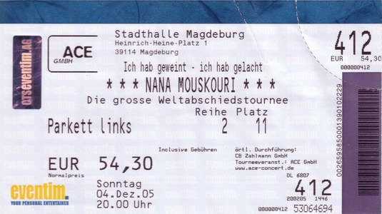 | 27.11.2005 | Bremerhaven | Stadthalle | D | Ticket | O | |||