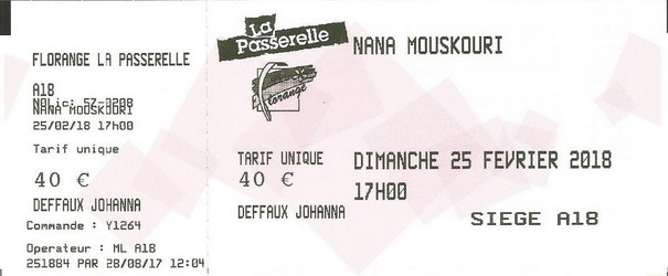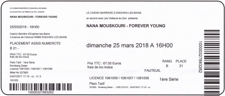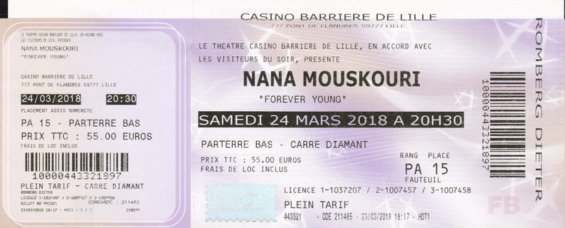 | 24.03.2018 | Lille | Casino Théâtre Barrière | F | Ticket | O | |||